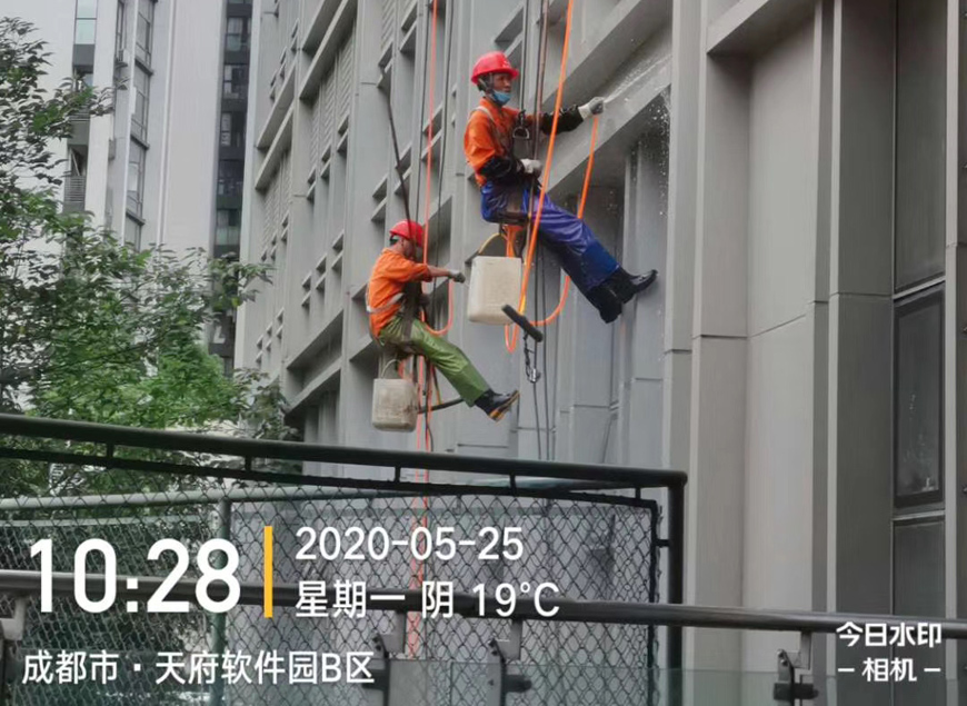 成都潔爾亮清潔對(duì)B區(qū)大樓外墻清洗服務(wù)。